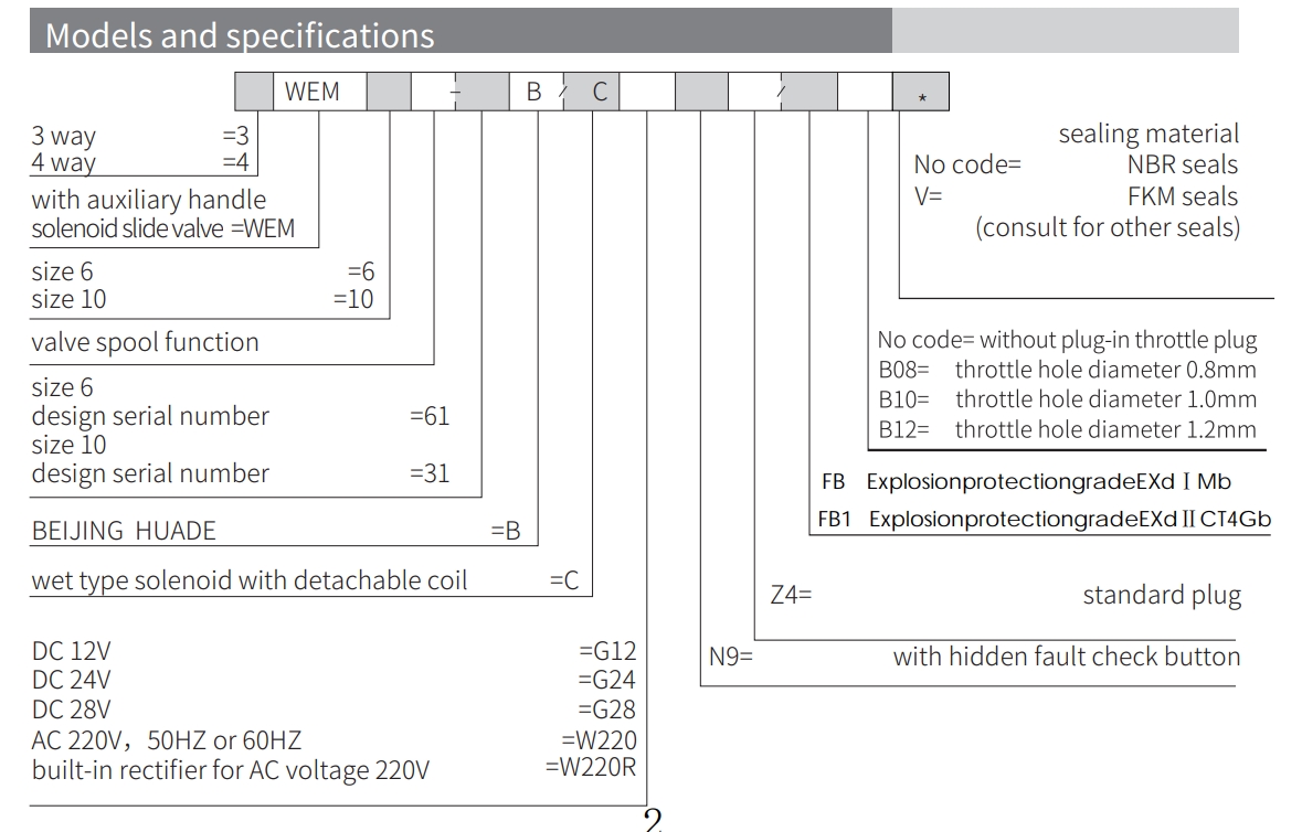 Produktuaren funtzioa eta leherketa frogatutako solenoide balbula aplikatzea 4WEM6 heldulekuarekin